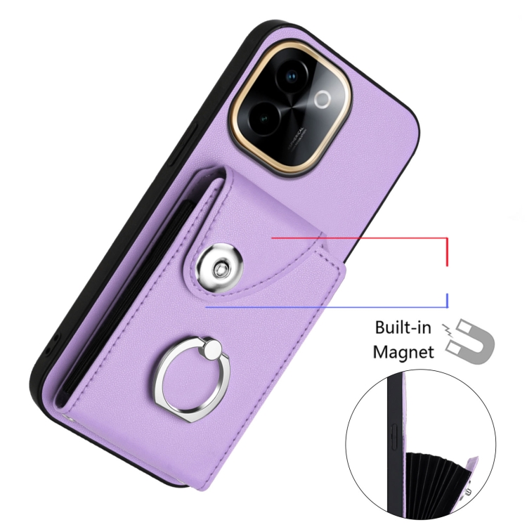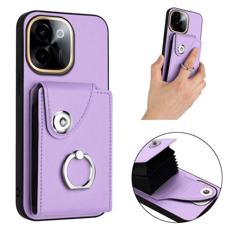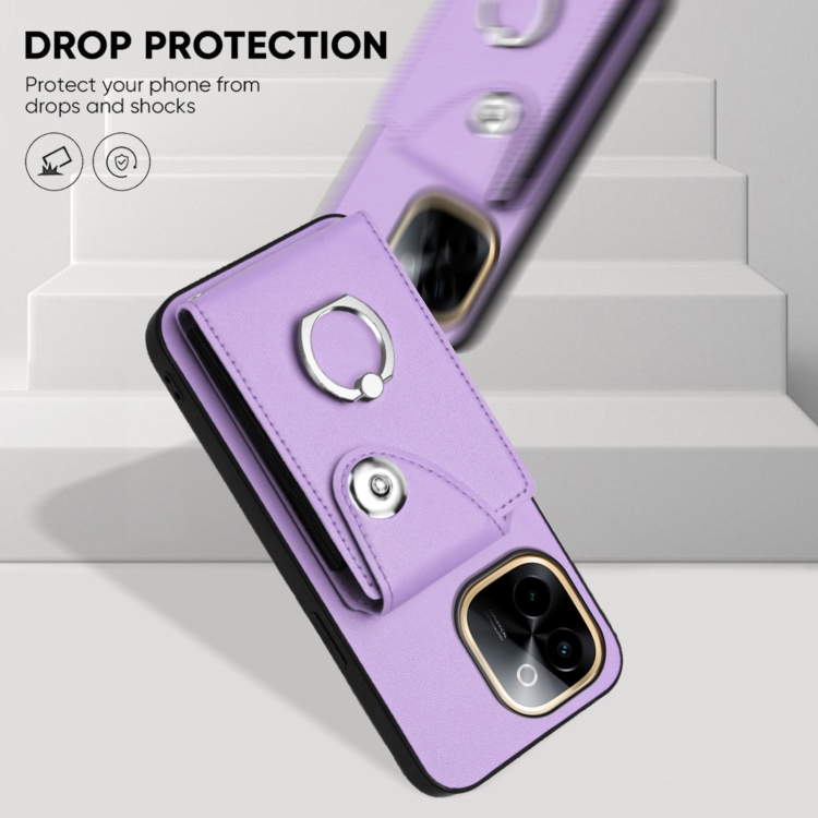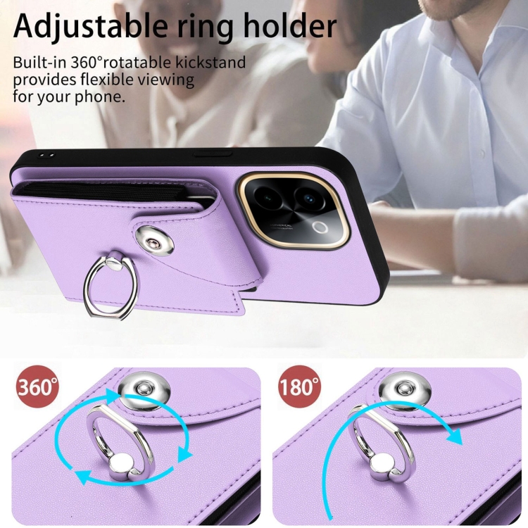 Funda para Teléfono con TaRJetero y Anillo para Vivo Y200 (Morado)
