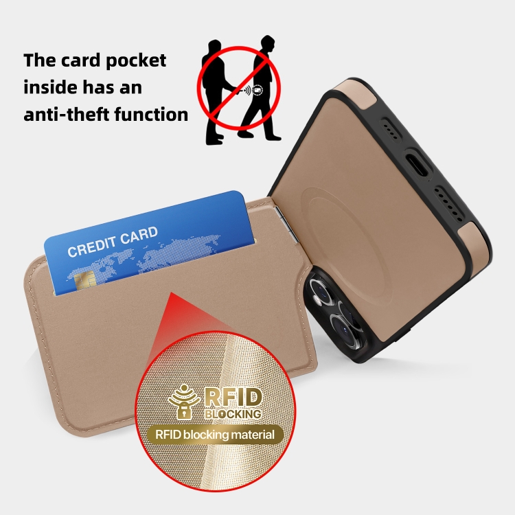 Funda para teléfono iPhone 12 Pro Max con tarjetero diseño chaqueta de plumas y Magsafe (Oro Rosa)