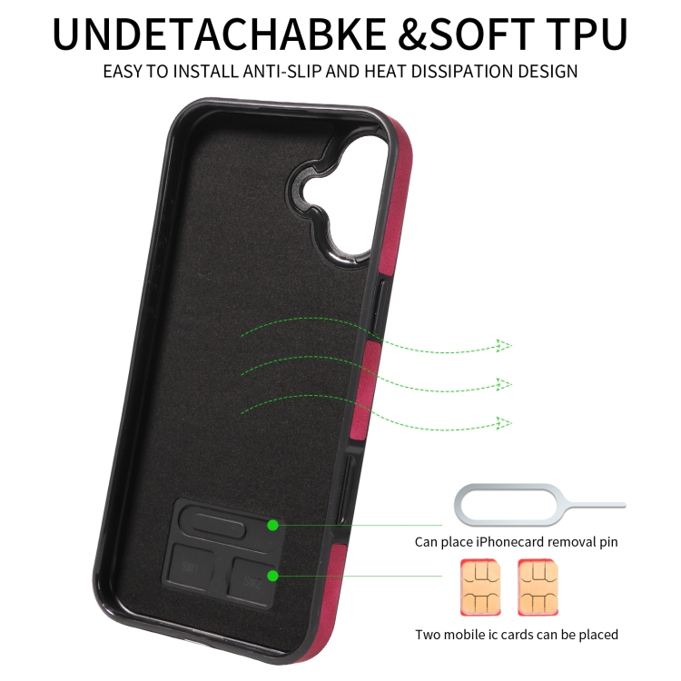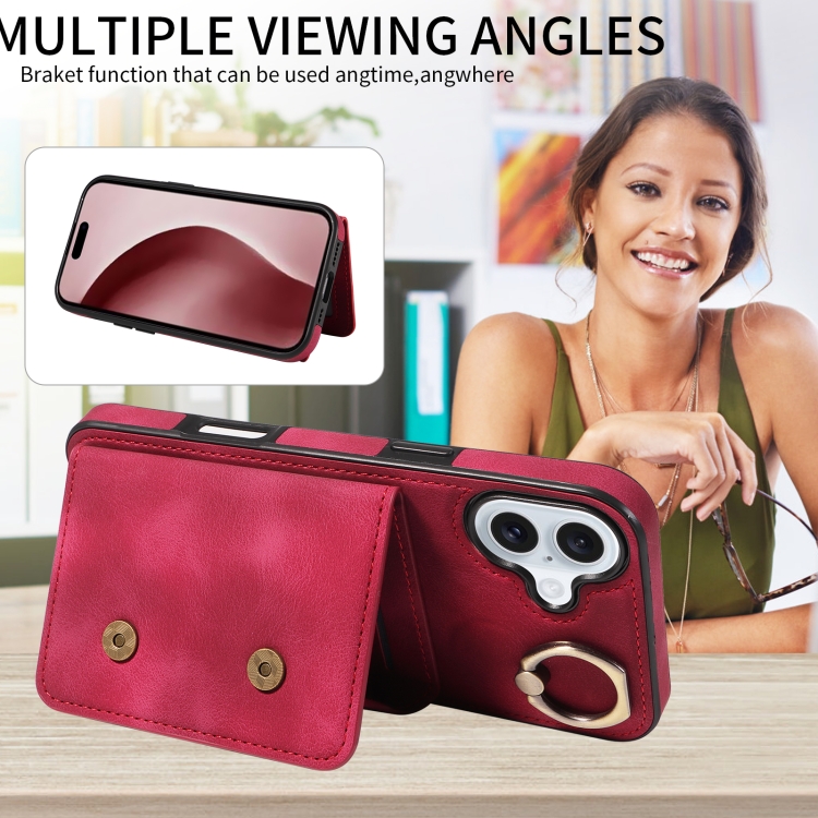 Funda para Teléfono iPhone 16 Plus con Tarjetero y Hebilla de Anilla (Roja)