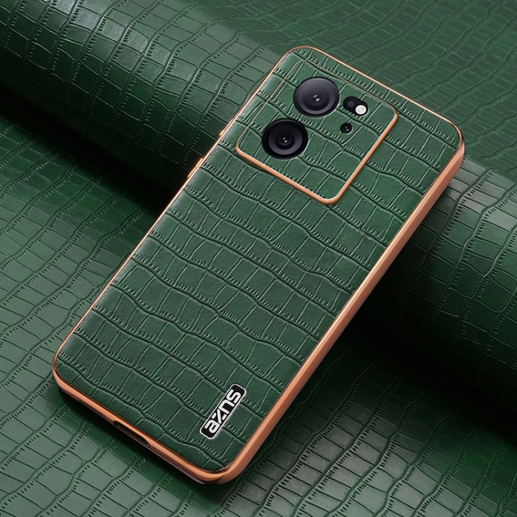 Funda para Teléfono con Textura de Cocodrilo y Marco Galvanizado Azns para Xiaomi 13T/13T Pro (Verde)