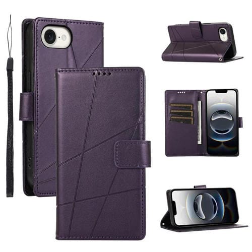 Funda para Teléfono Cuero Genuino PU iPhone 16E Líneas en Relieve (Morado)