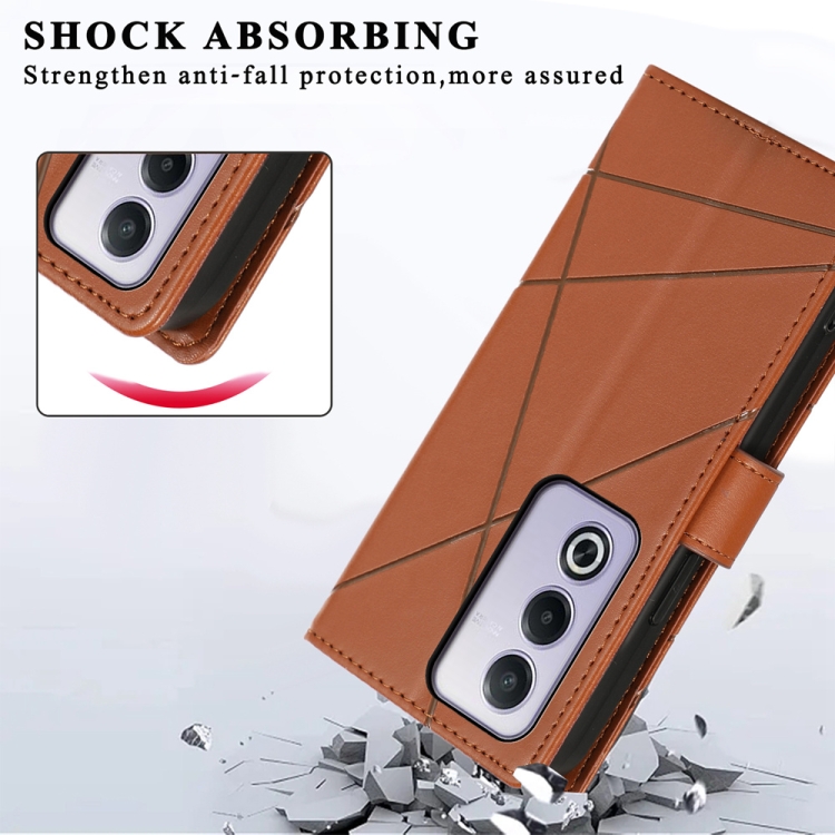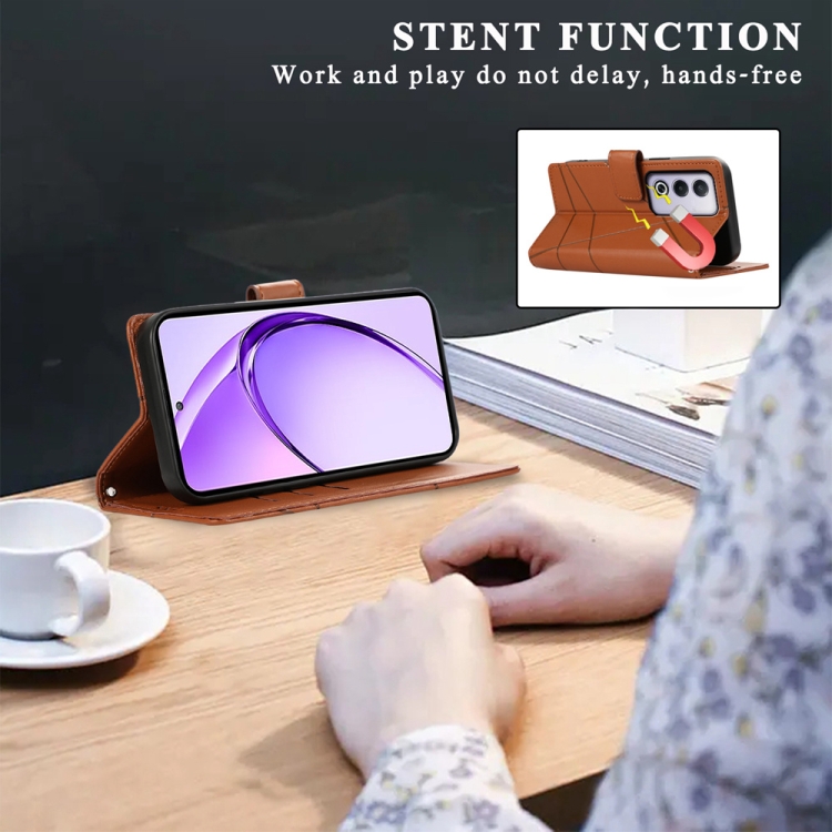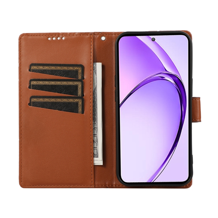 Funda para Teléfono con Textura de Cuero Genuino de Pu con Líneas En Relieve para Oppo A3 Pro 5G (Marrón)
