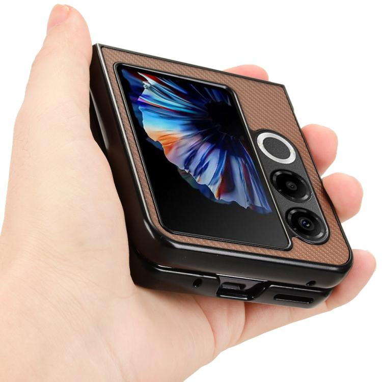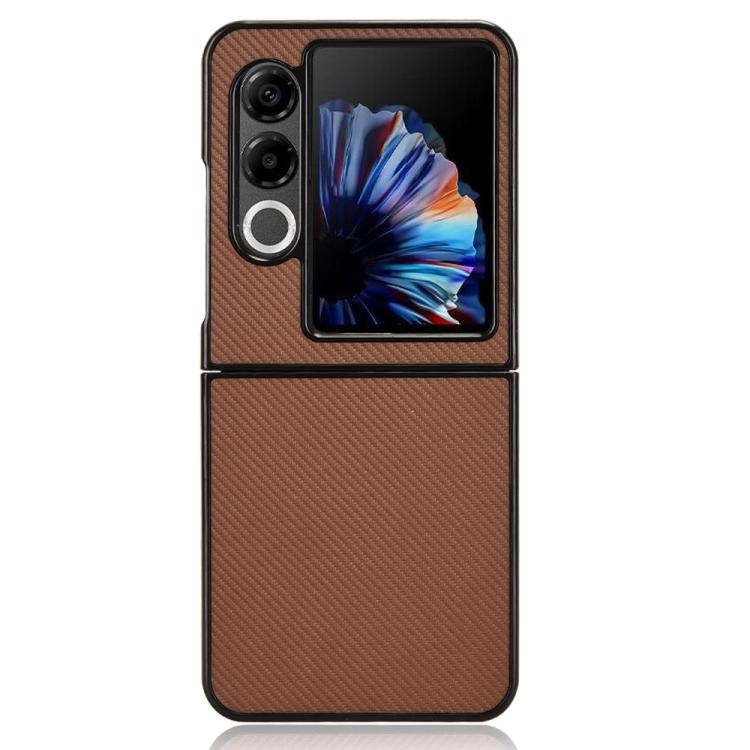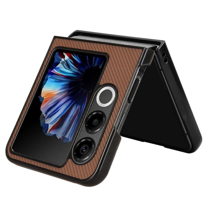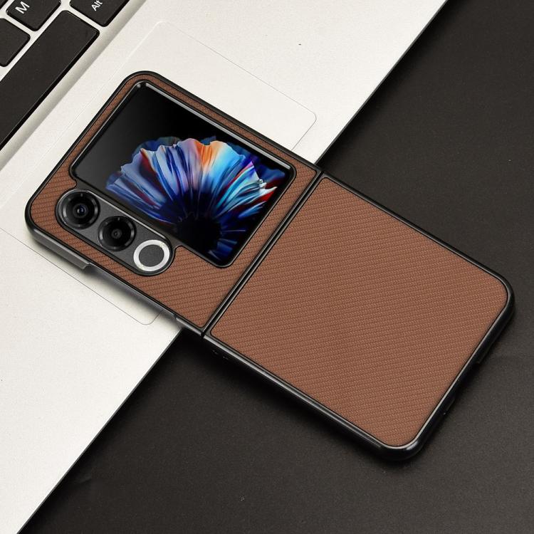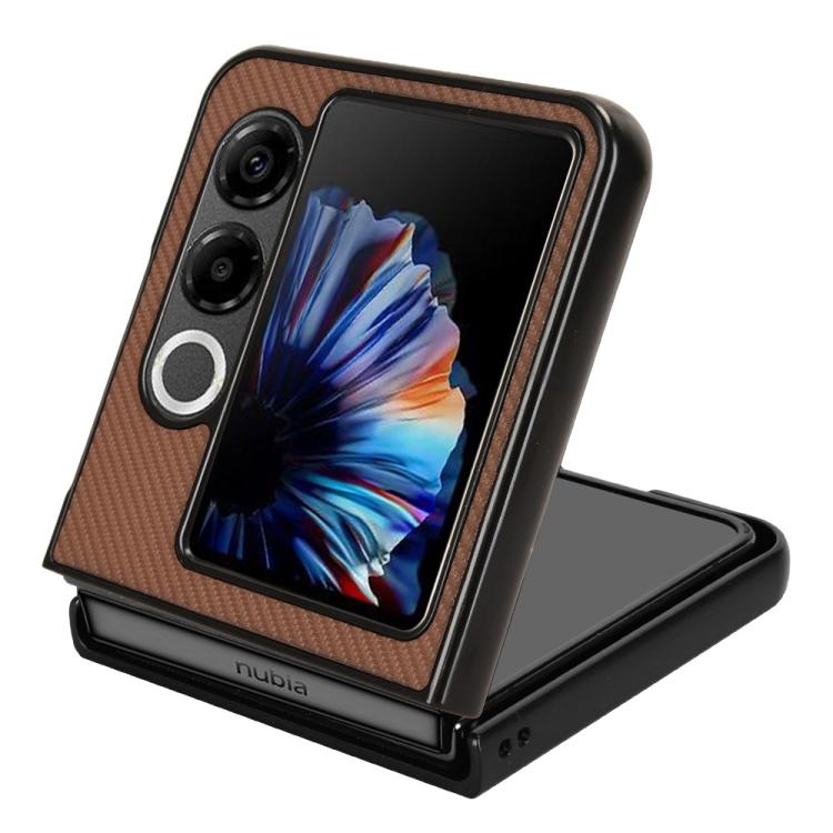 Funda para Teléfono ZTE Nubia Flip2 Textura Fibra de Carbono y Cuero Sintético (Marrón)