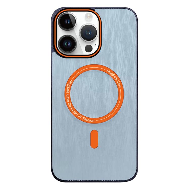 Funda para teléfono iPhone 16 Pro Max Magsafe textura madera imitación (Azul Cielo)