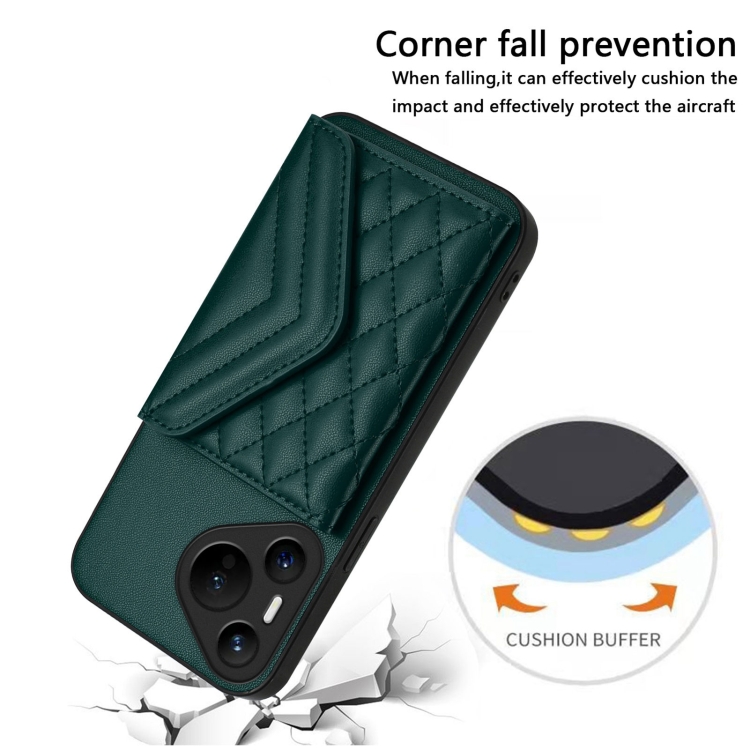 Funda para Teléfono Huawei Pura 70 con Textura Rombal y Rfid con Cordón Largo (Verde)