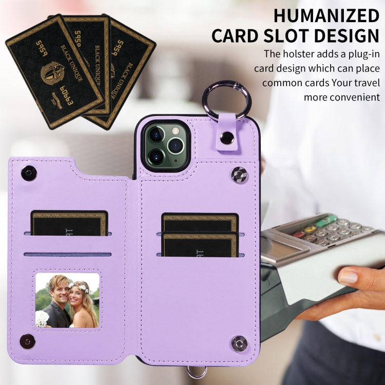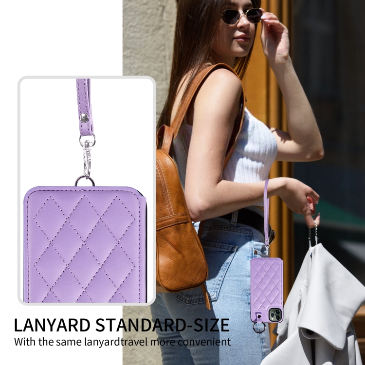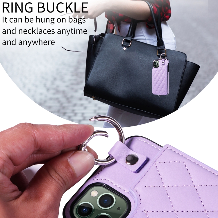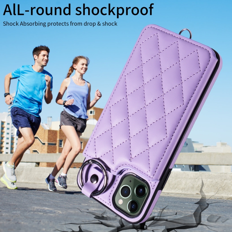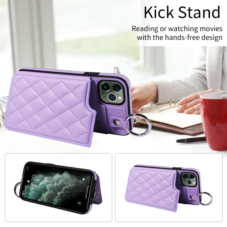 Funda para Teléfono Apple iPhone 11 Pro Max Textura Rómbica con Cordón Corto (Morado)