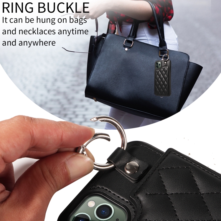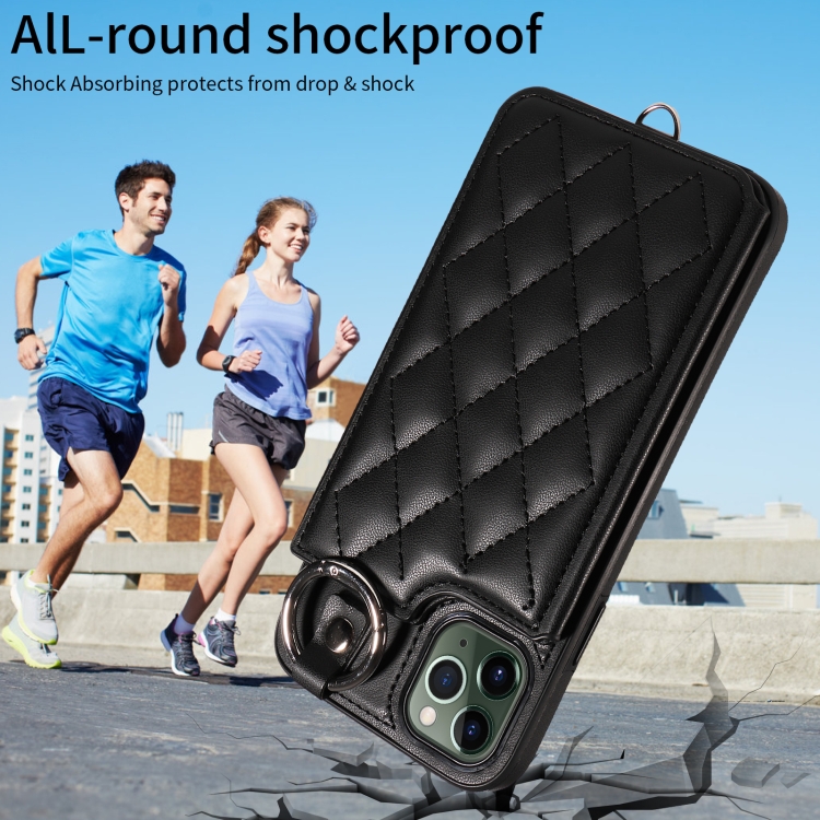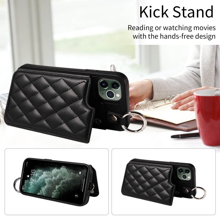 Funda para Teléfono iPhone 11 Pro Max Textura Rómbica Cordón Corto (Negro)