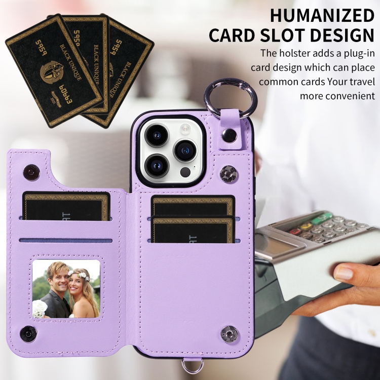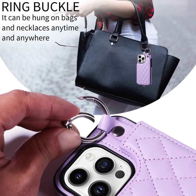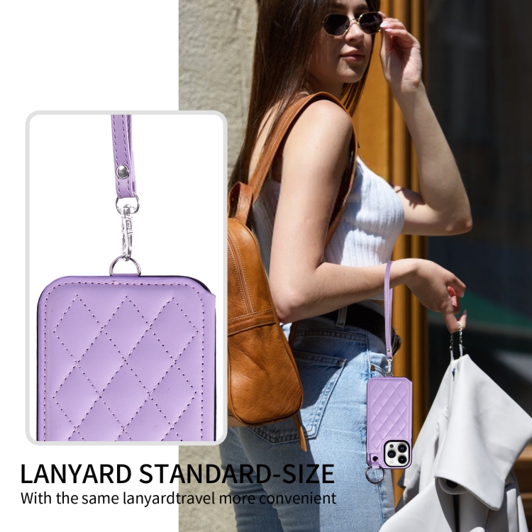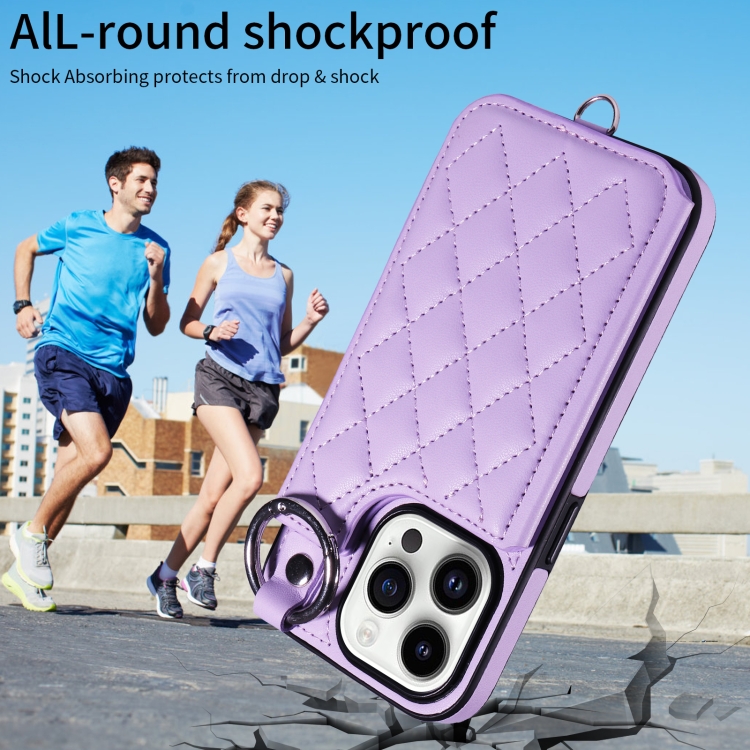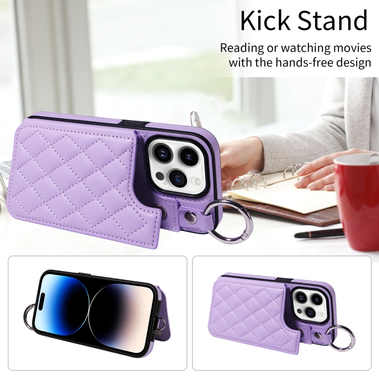 Funda para Teléfono Apple iPhone 14 Pro Textura Rómbica Cordón Corto (Morado)