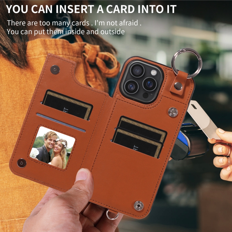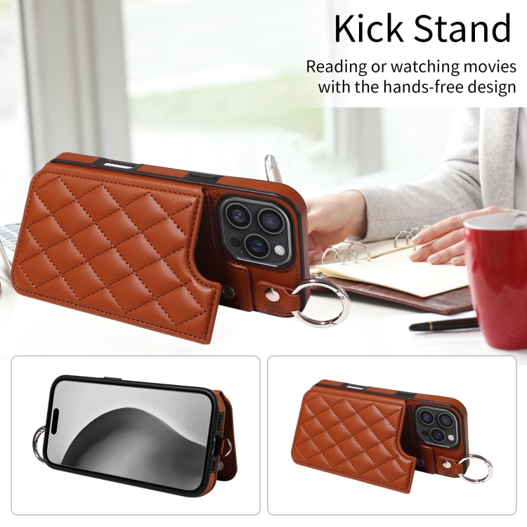 Funda para Teléfono iPhone 16 Pro Max Textura Rómbica Cordón Corto (Marrón)