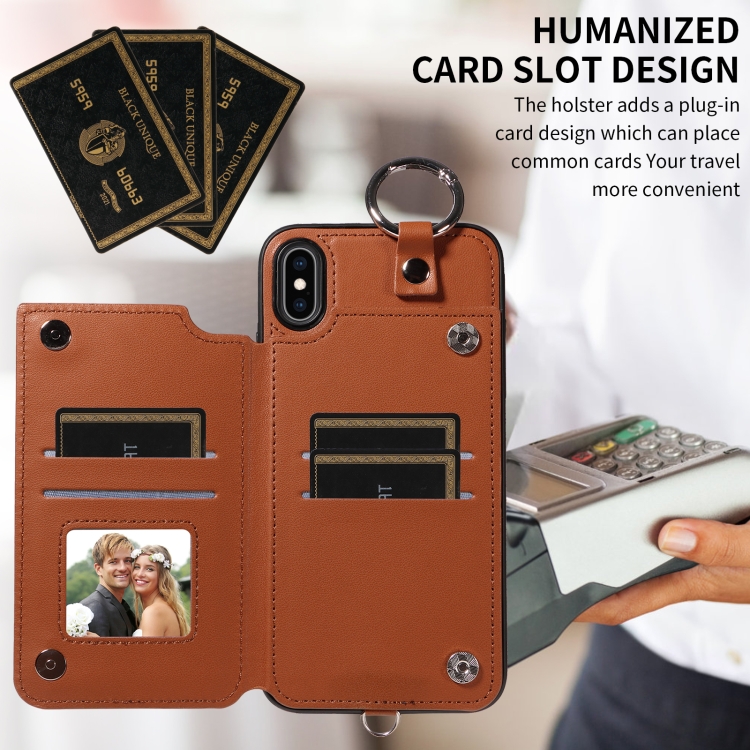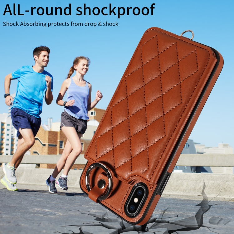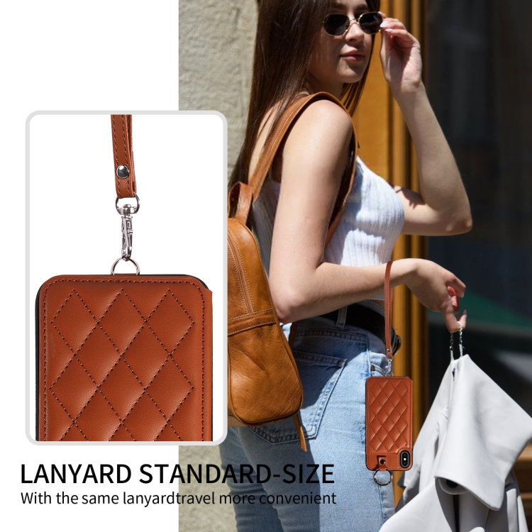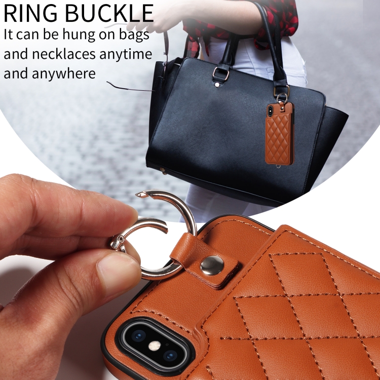 Funda para Teléfono iPhone Xs Max Textura Rómbica Cordón Corto (Marrón)