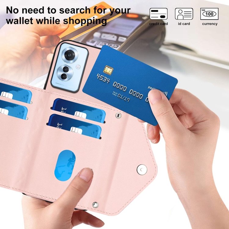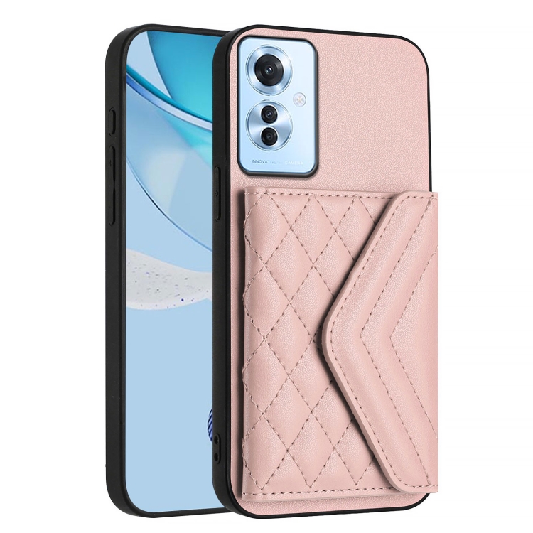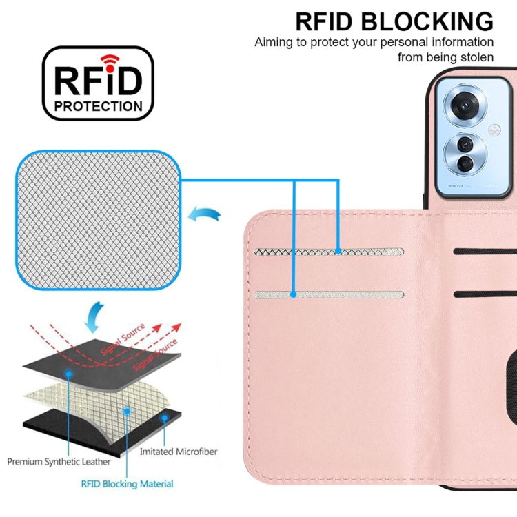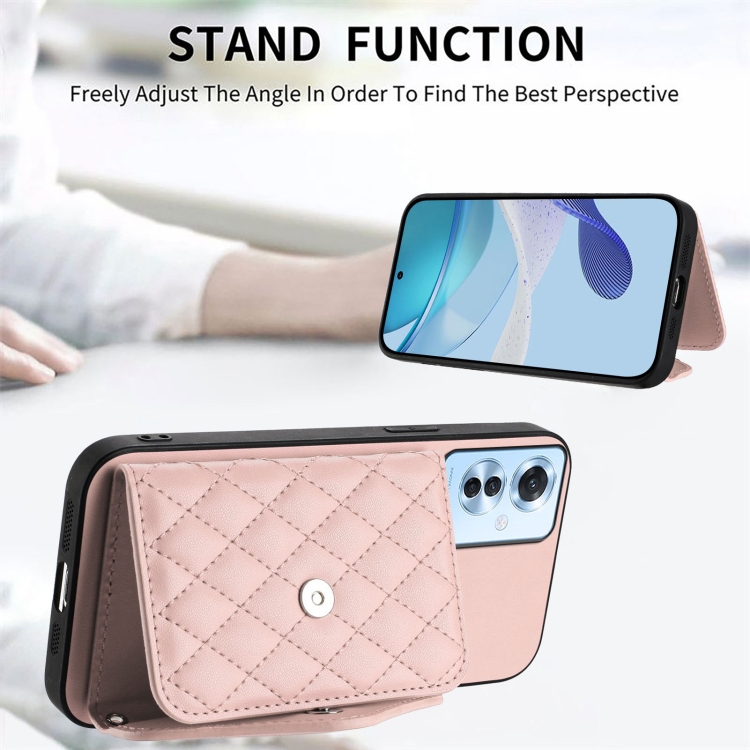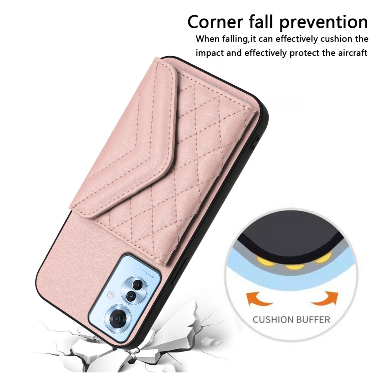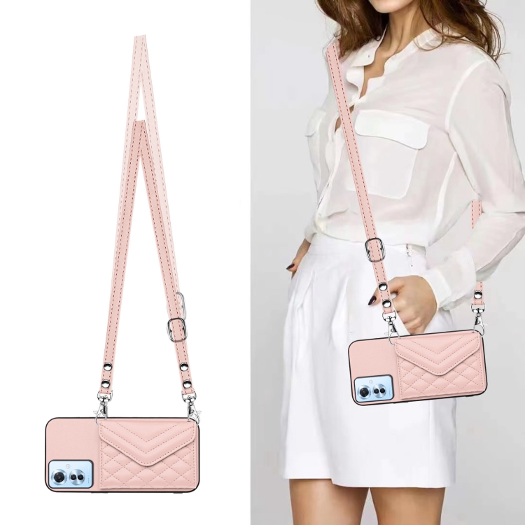 Funda para Teléfono con Textura Rómbica y Rfid para Oppo F25 Pro 5G, con Cordón Largo (Oro Rosa)
