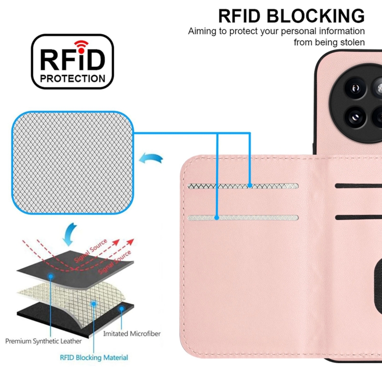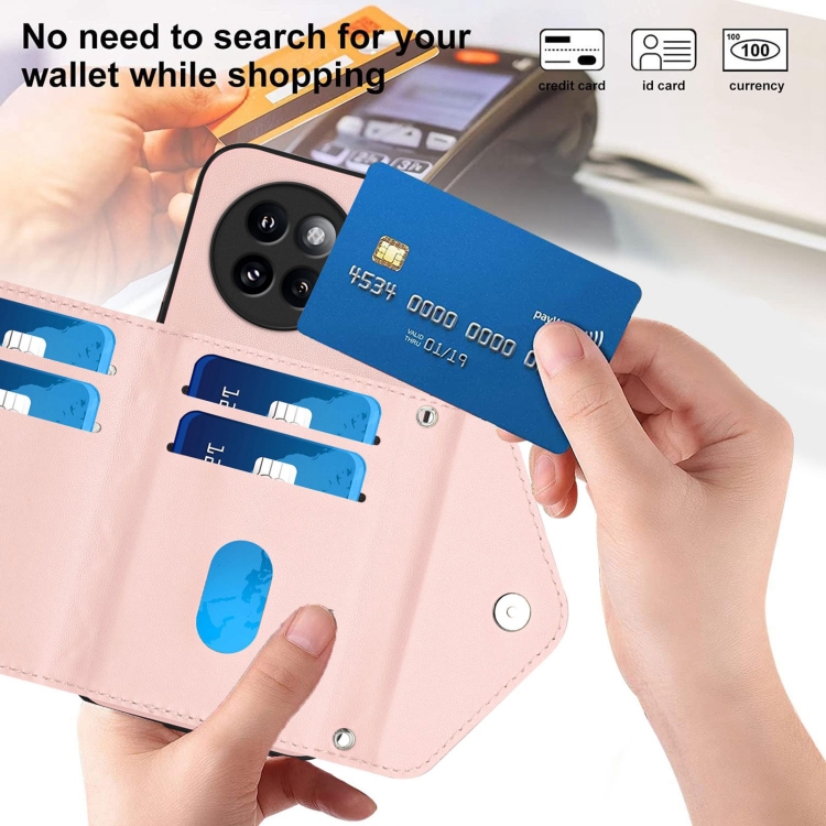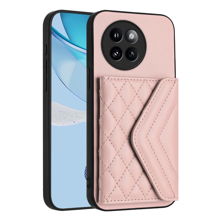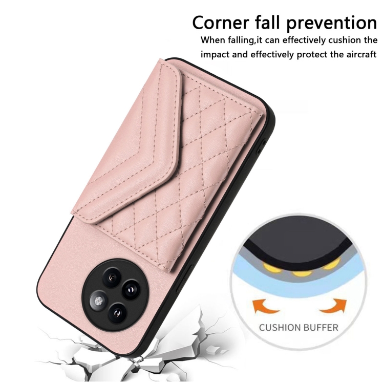Funda para Teléfono con Textura Rómbica y TaRJetero Rfid para Xiaomi Civi 4 Pro con Cordón Largo (Oro Rosa)