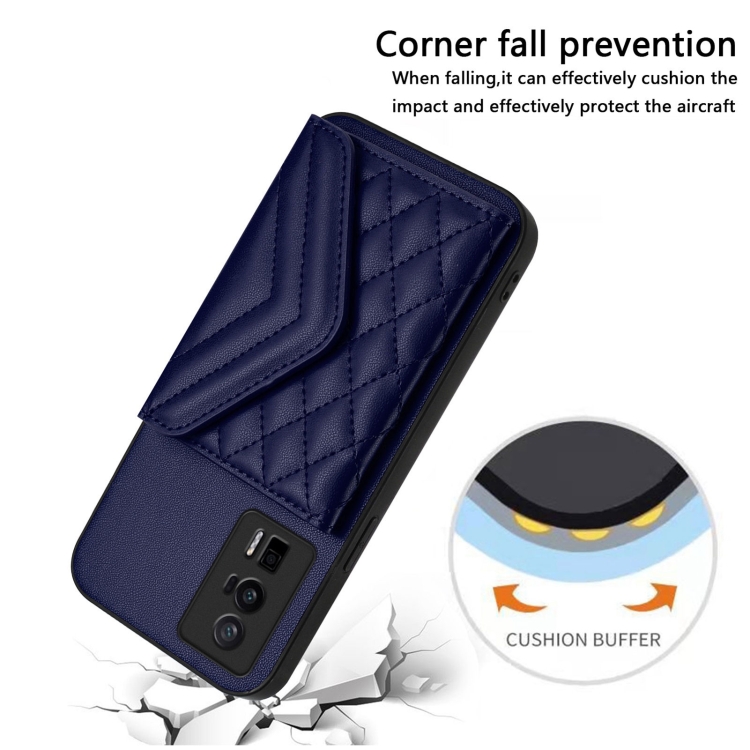 Funda para Teléfono con Textura Rómbica y TaRJetero Rfid para Xiaomi Poco F5 Pro 5G con Cordón Largo (Azul)