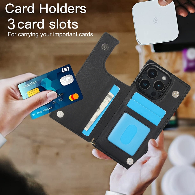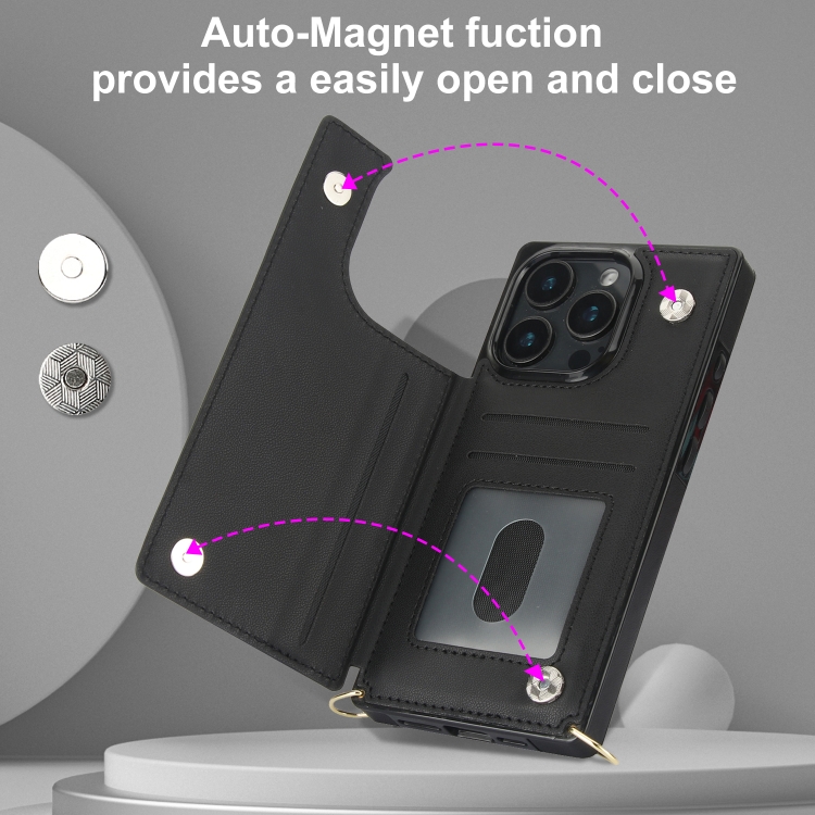 Funda para Teléfono Cuadrada con Cremallera y Diseño Cruzado para iPhone 16 Pro (Negra)