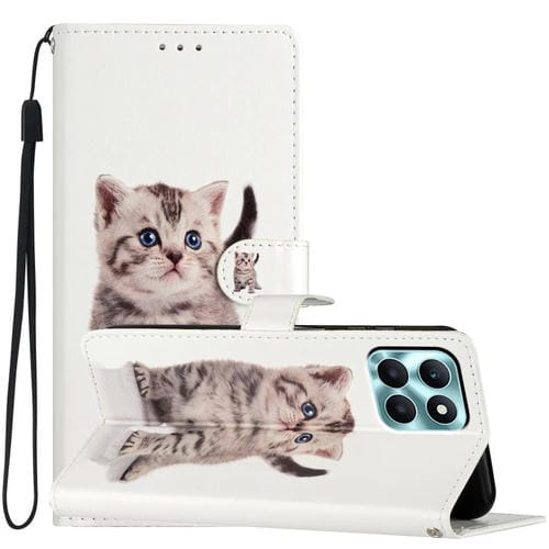 Funda para Teléfono Honor X6A de Cuero con Dibujo Coloreado (Pequeño Gato Atigrado)