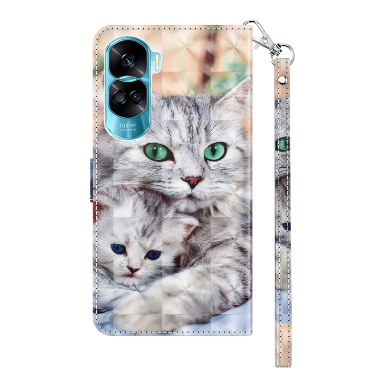 Funda para Teléfono Honor 90 Lite Cuero Pintado 3D Dos Gatos Amorosos