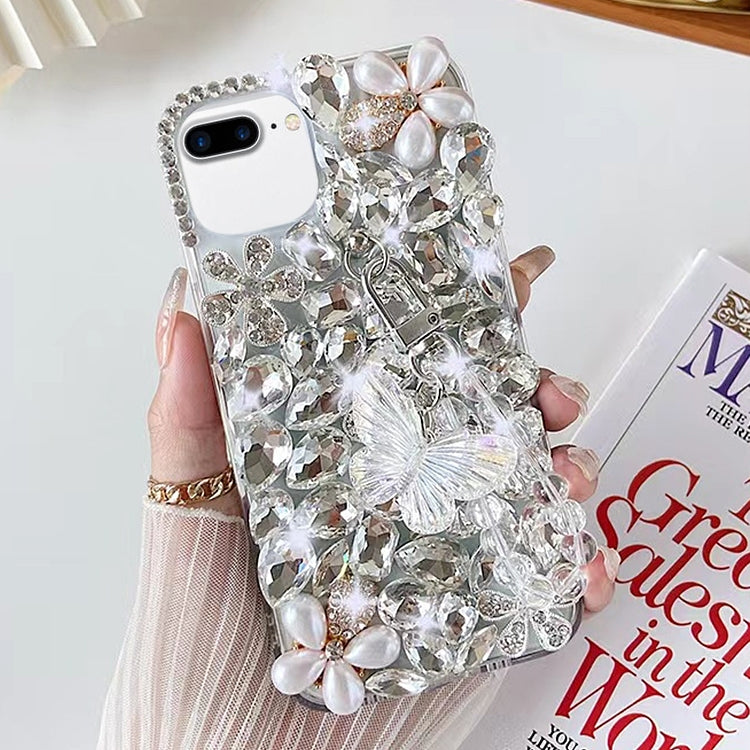 Funda para Teléfono PC con Diamantes y Mariposas para iPhone 7 Plus/8 Plus (Blanca)