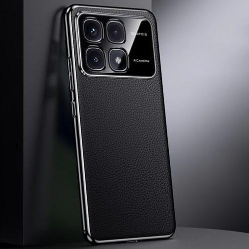 Funda para Teléfono de PC Galvanizada de Primera Capa de Cuero de Vaca para Redmi K70 Ultra (Negro)