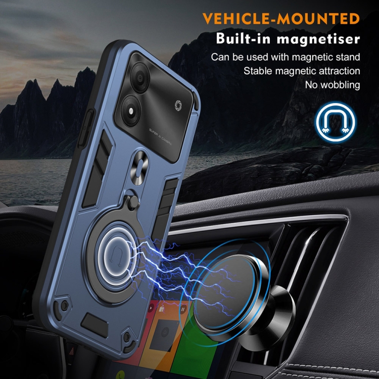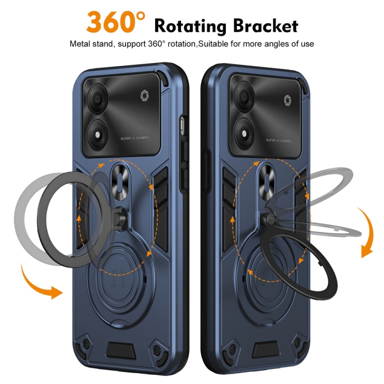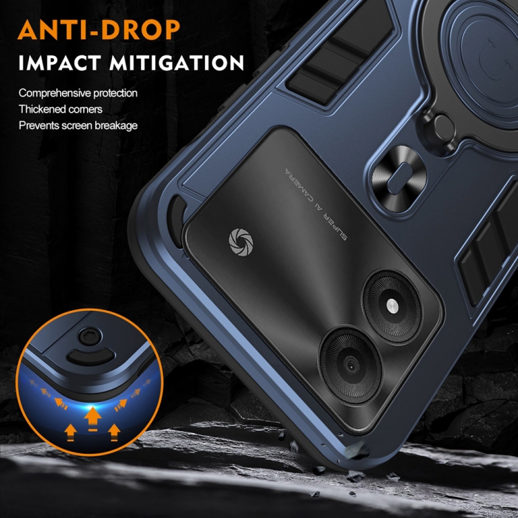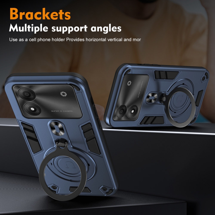 Funda para Teléfono PC TPU con Soporte Anillo Giratorio 360° para ZTE Blade A34/A54 (Azul Marino)