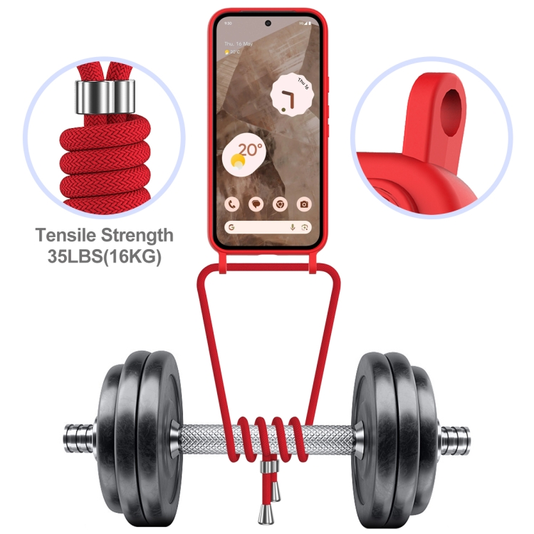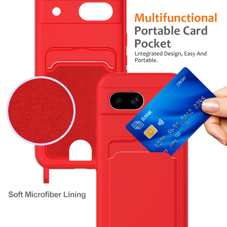 Funda para Teléfono Google Pixel 8A de Silicona Líquida con Cordón y Bolsa para Tarjetas (Rojo)