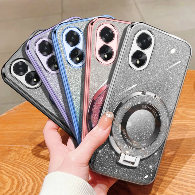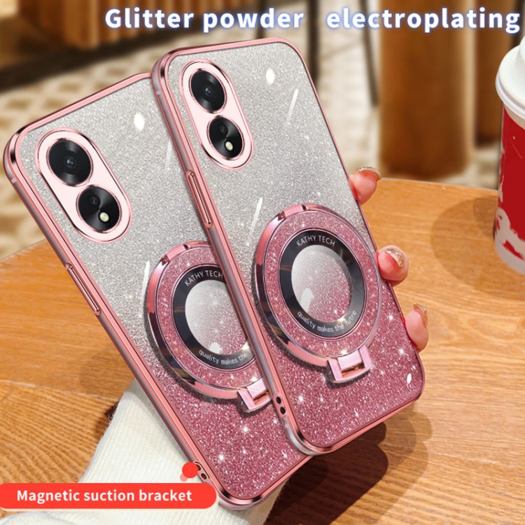 Funda para Teléfono de TPU con Soporte Redondo con Purpurina Degradada Plateada para Oppo A38 4G/A18 (Rosa)