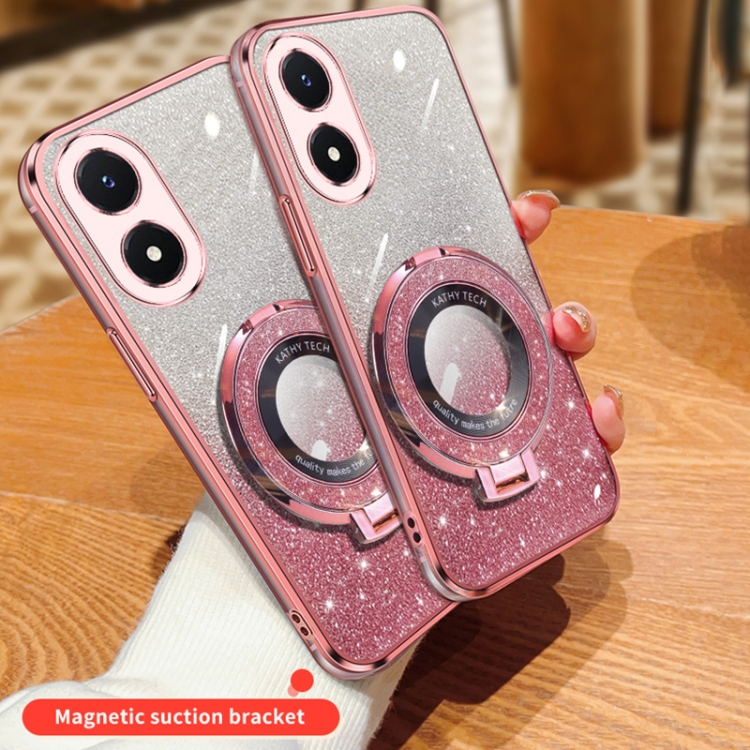 Funda para Teléfono de TPU con Soporte Redondo con Purpurina y Degradado Chapado para Vivo Y02S (Azul Sierra)