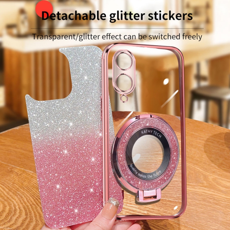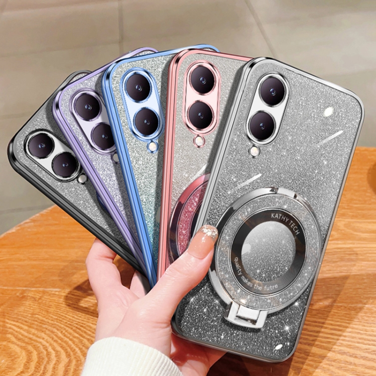 Funda para Teléfono de TPU con Soporte Redondo con Purpurina y Degradado Chapado para Vivo Y17S (Plateada)