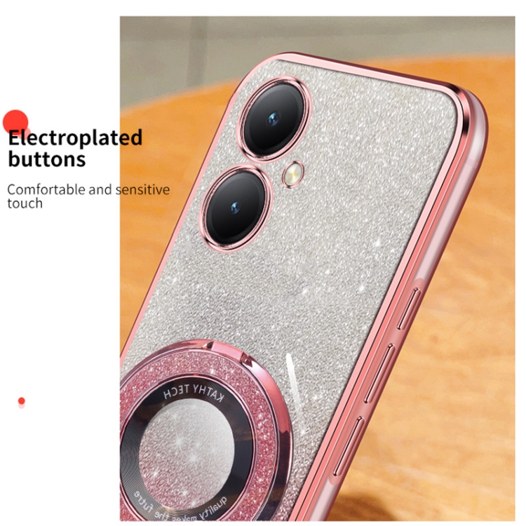 Funda para Teléfono de TPU con Soporte Redondo y Purpurina Degradada Chapada para Vivo Y35+ / Y27 4G (Púrpura)