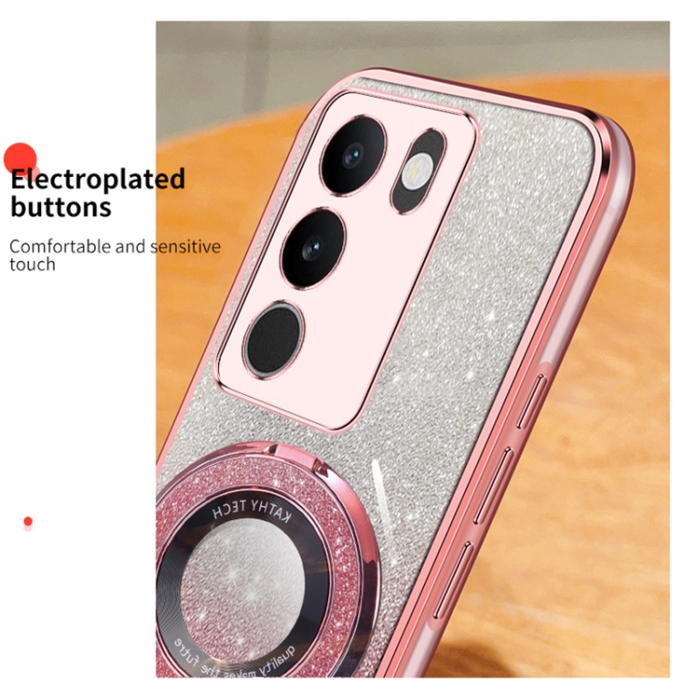 Funda para Teléfono de TPU con Soporte Redondo y Purpurina Degradada Plateada para Vivo S17T / S17 / S17 Pro (Púrpura)