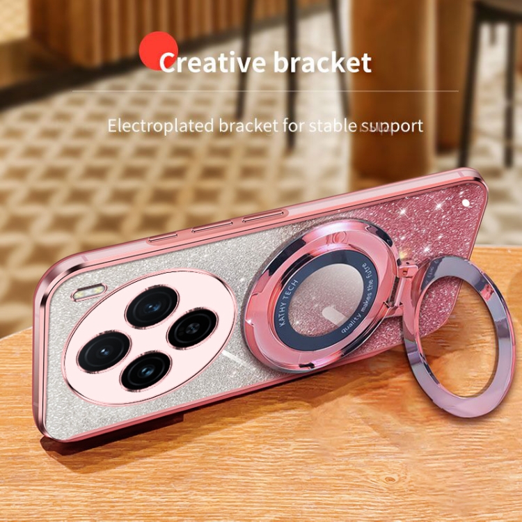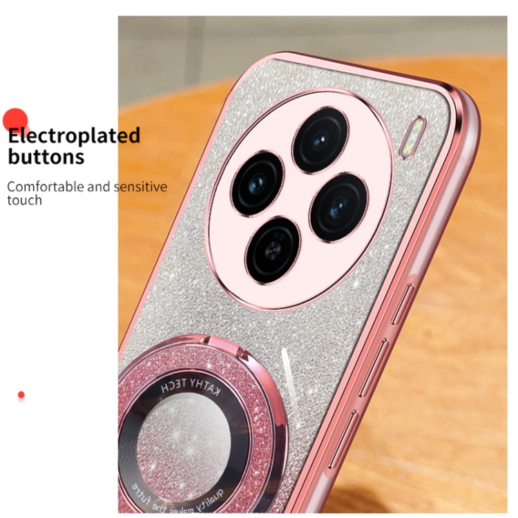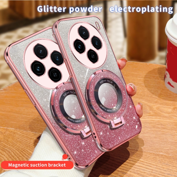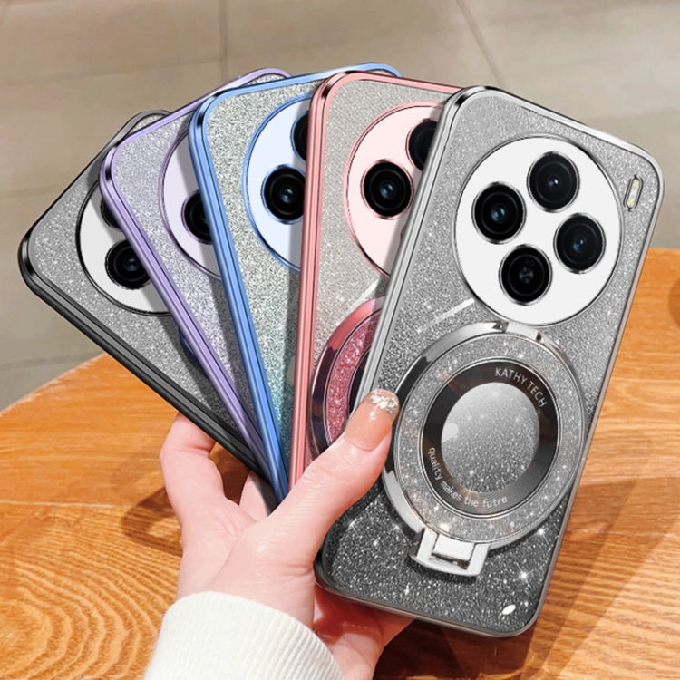 Funda para Teléfono de TPU con Soporte Redondo y Purpurina Degradada Plateada para Vivo X100S (Azul Sierra)