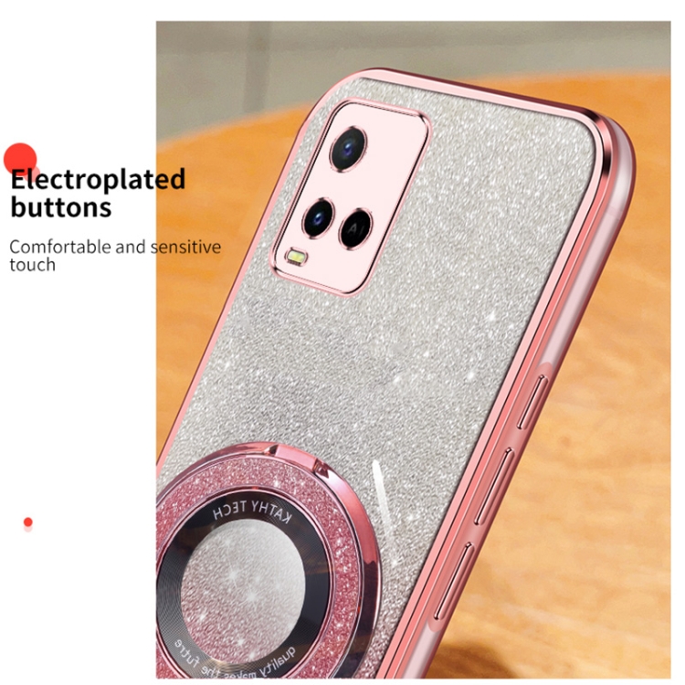 Funda para Teléfono de TPU con Soporte Redondo y Purpurina Degradada Plateada para Vivo Y21/Y21S (Rosa)