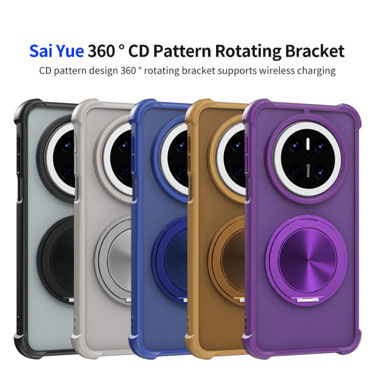 Funda para Teléfono Huawei Mate 70 con Textura de Cd y Soporte Giratorio 360° Magsafe (Dorada)