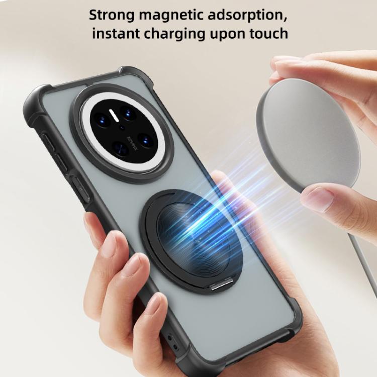 Funda para Teléfono Huawei Mate 70 con Textura de Cd y Soporte Giratorio 360° Magsafe (Gris)