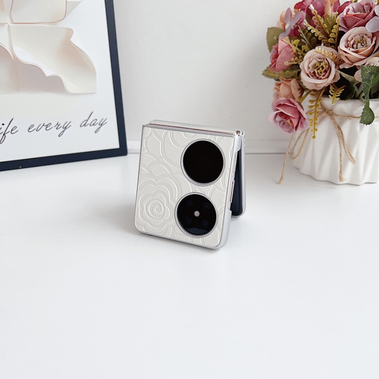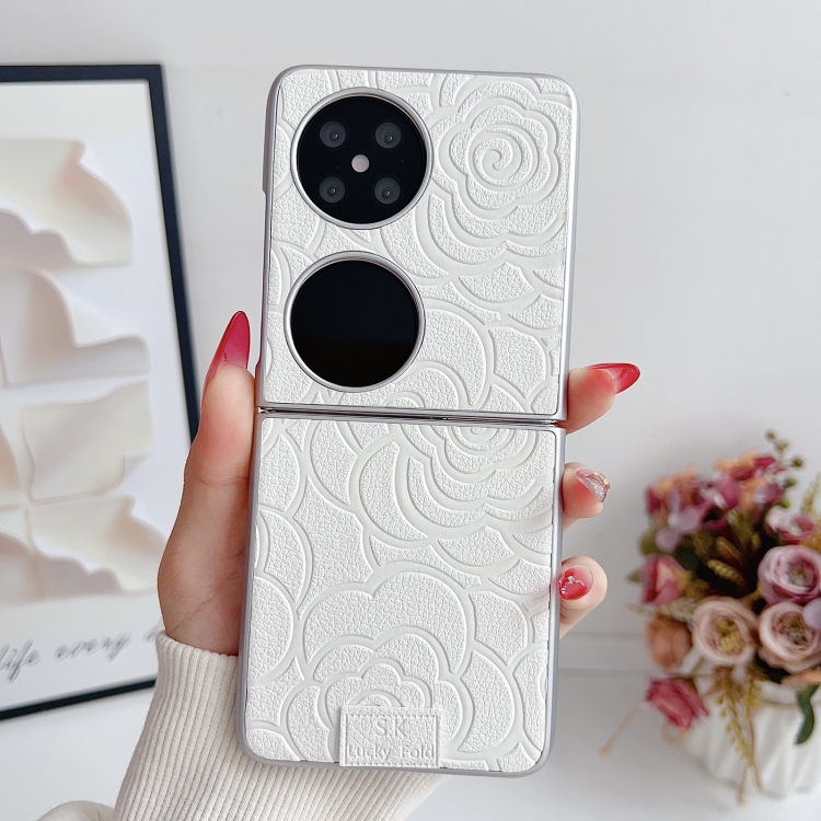 Funda para Teléfono Huawei P50 Pocket Camellia Plaid Fabric Diy para PC (Blanca)