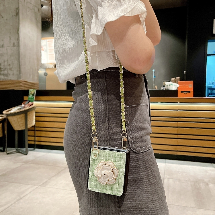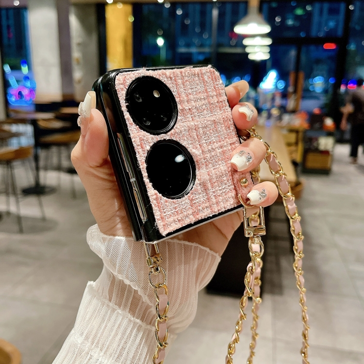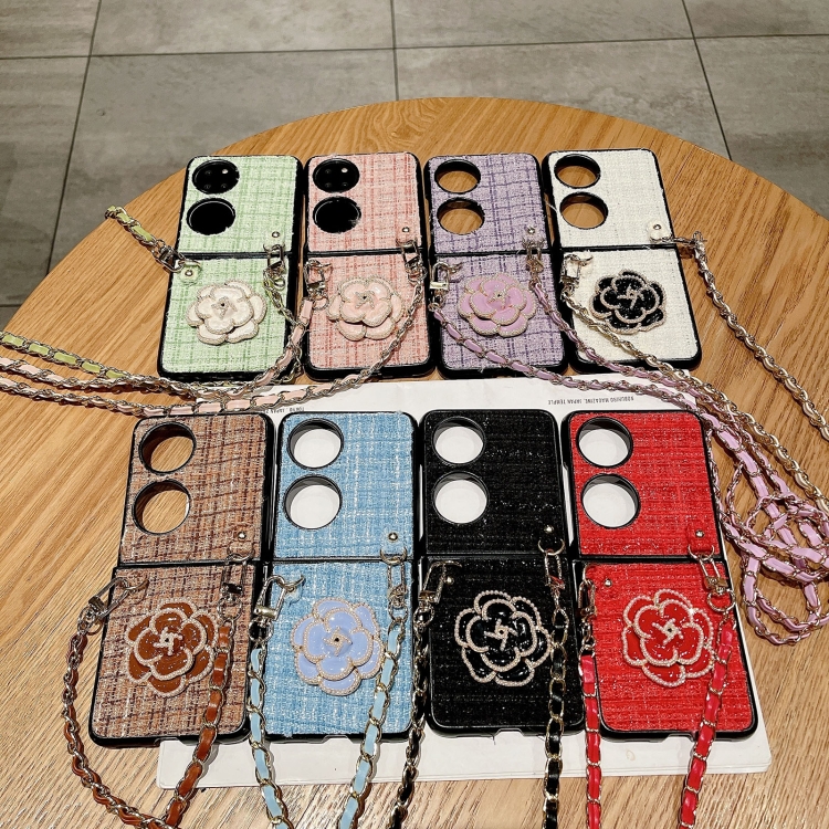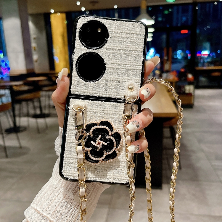 Funda para Teléfono Huawei P50 Pocket Camellia Plaid Fabric PC con Cordón Largo (Blanco)