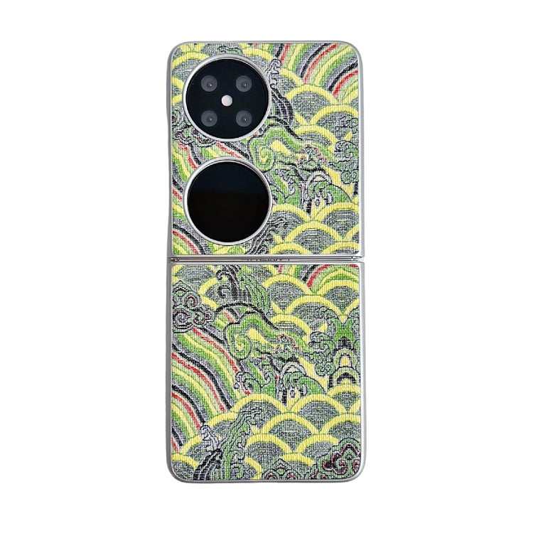 Funda para Teléfono Huawei Pocket 2 con Bordado de Nubes y Cobertura Total (Verde)