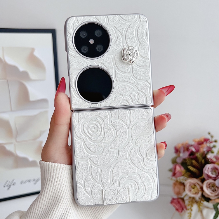 Funda para Teléfono Huawei Pocket 2 Diseño de Cuadros 3D Camelia (Blanca)