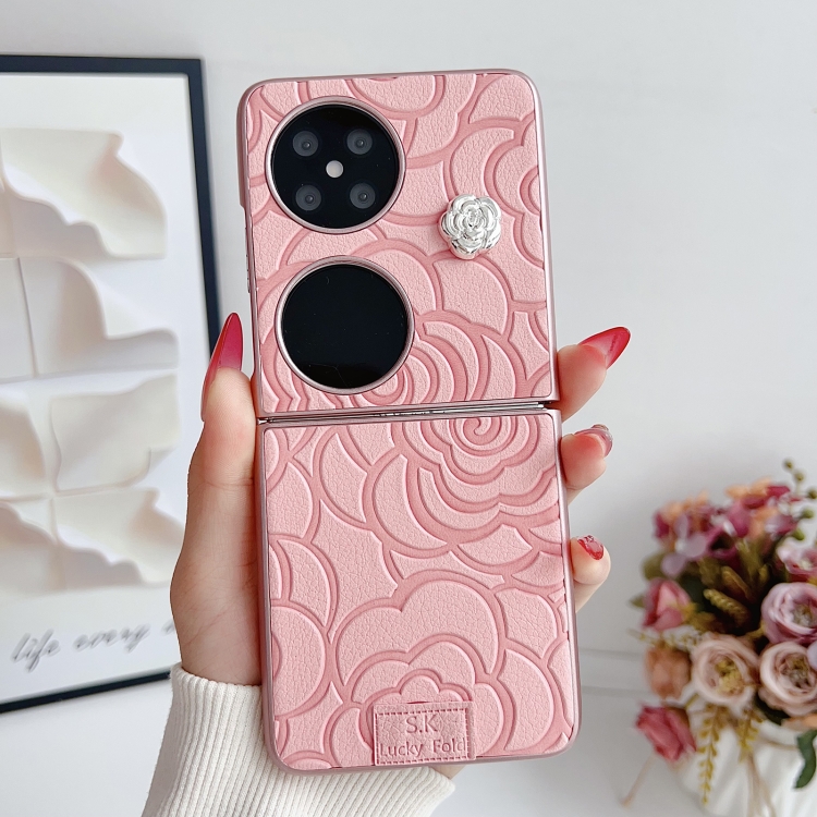 Funda para Teléfono Huawei Pocket 2 Diseño de Cuadros 3D Camelia (Rosa)