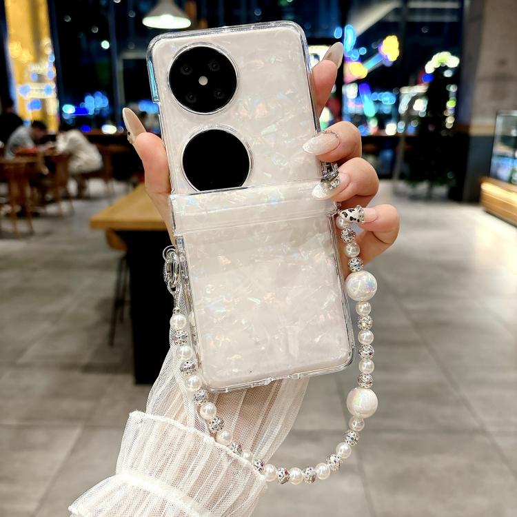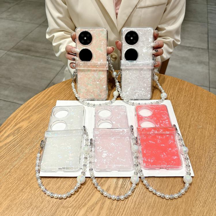 Funda para Teléfono Huawei Pocket 2 con Textura Perlada, Tres Piezas y Pulsera (Beige)