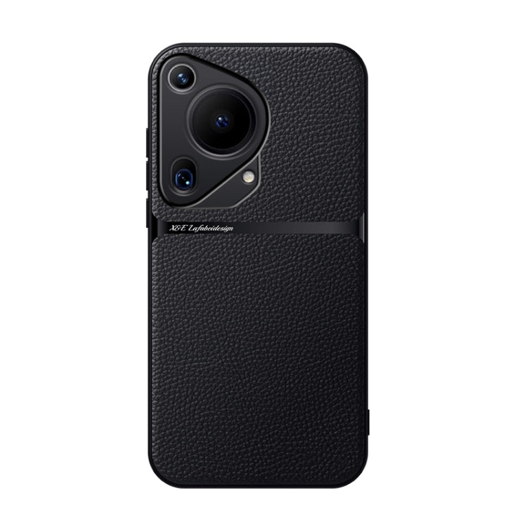 Funda para Teléfono Huawei Pura 70 Ultra Piel de Lichi Cobertura Total Magnética (Negra)