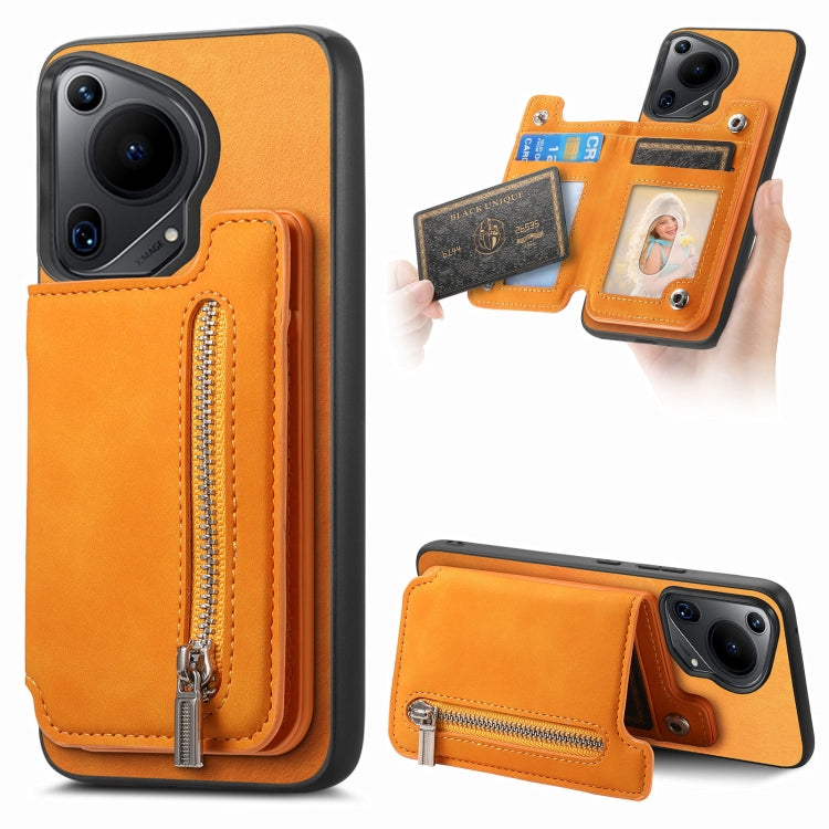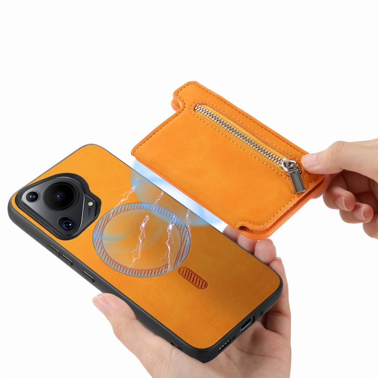 Funda para Teléfono Huawei Pura 70 Ultra Retro con Cremallera Magsafe y Tarjetero (Amarillo)