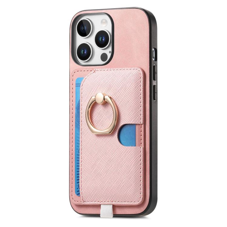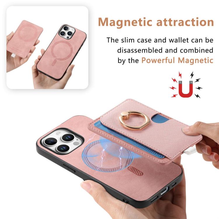 Funda para Teléfono Magsafe iPhone 14 Ranuras Tarjetas Anillo Lateral Cuero Cruz Retro (Rosa)