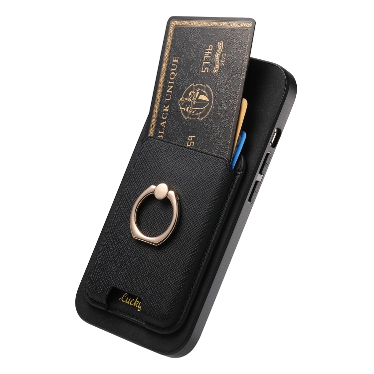 Funda para Teléfono Magsafe iPhone 16 Plus con Tarjetero de Cuero Estilo Retro Cruzado (Negro)