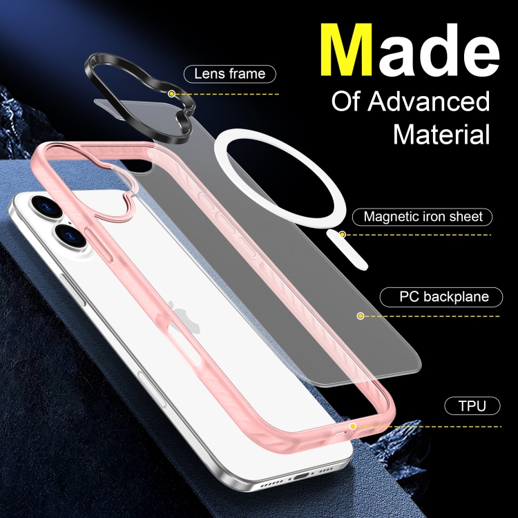 Funda para Teléfono Magsafe iPhone 16 Plus Transparente Tacto de Piel Esmerilada (Rosa)