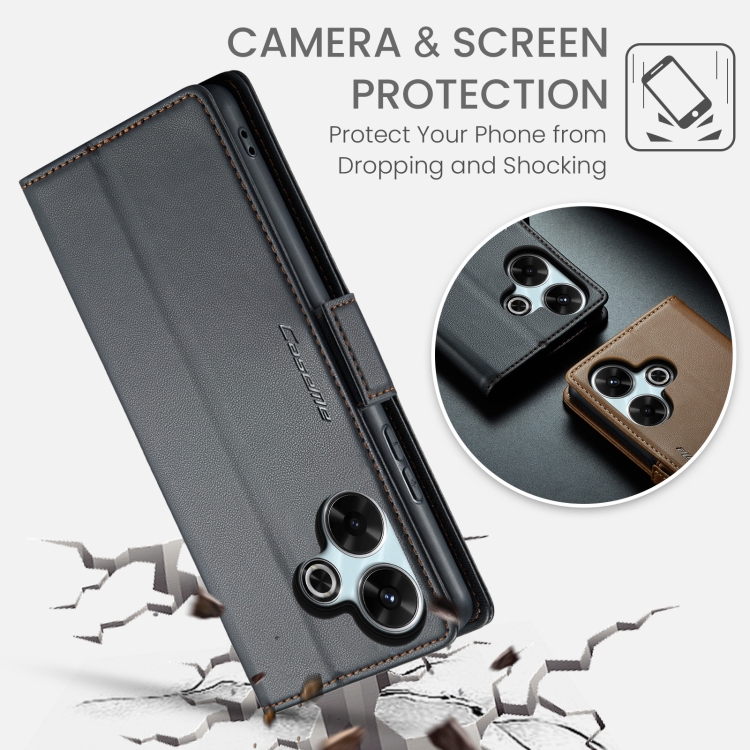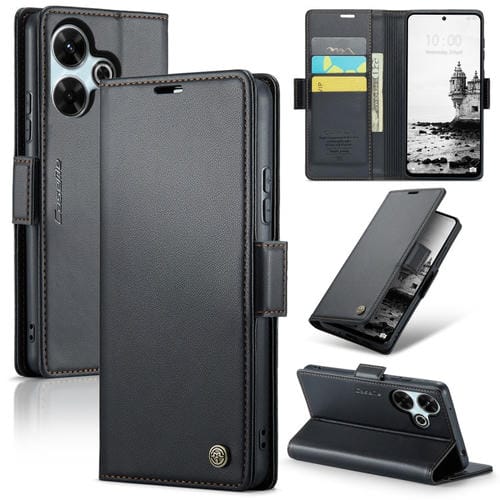 Funda para Teléfono Redmi 13 Caseme 023 con Hebilla de Mariposa y Textura de Lichi, de Cuero Antirrobo Rfid (Negro)