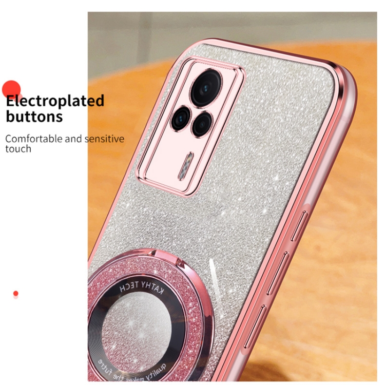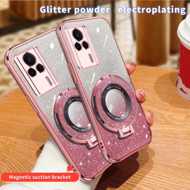 Funda para Teléfono Redmi K60E con Soporte Redondo de TPU con Purpurina Degradada (Rosa)