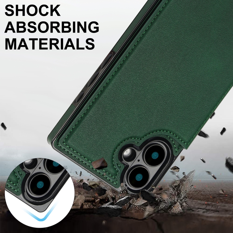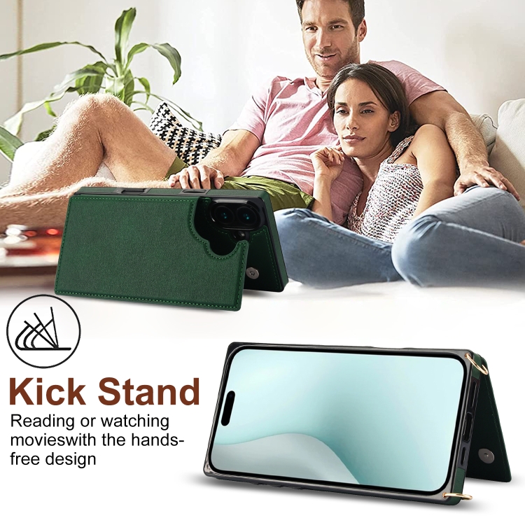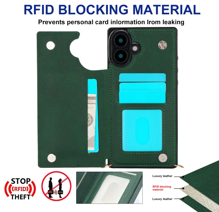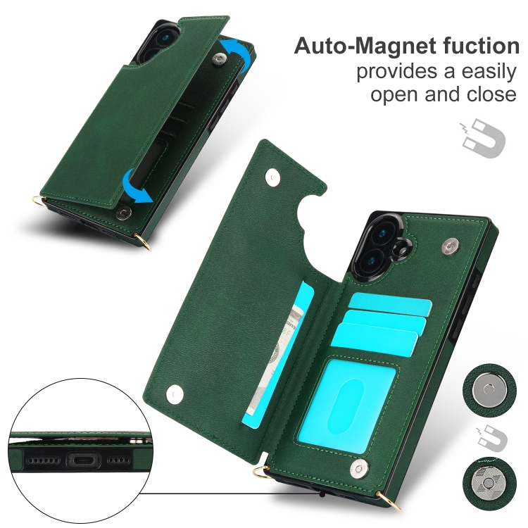 Funda para Teléfono Tipo Billetera con Tapa y Doble Hebilla Cuadrada Cruzada para iPhone 16 Plus (Verde)