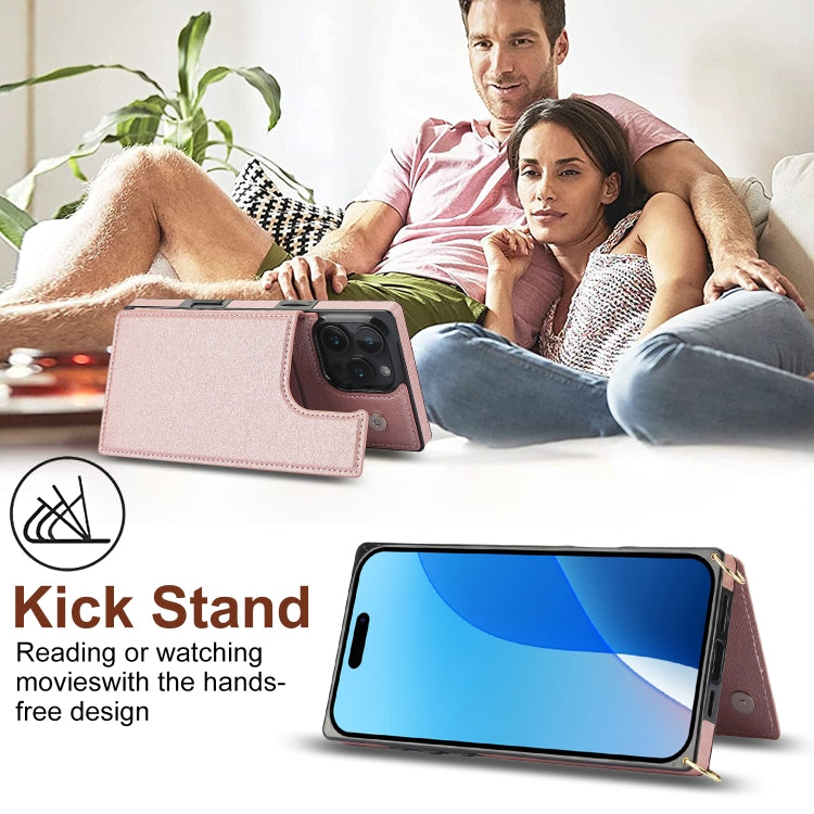 Funda para teléfono billetera con tapa y doble hebilla cuadrada cruzada iPhone 16 Pro (Oro Rosa)