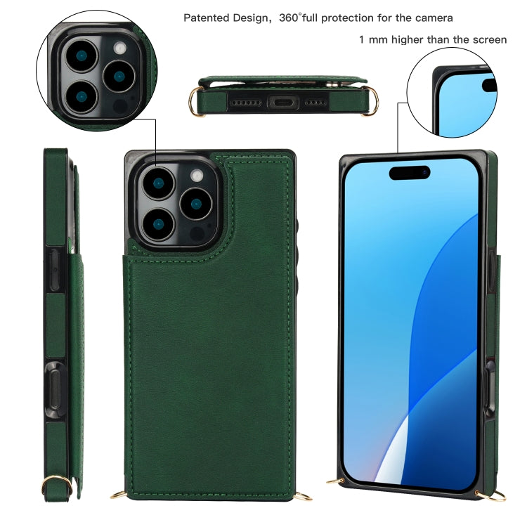 Funda para Teléfono Tipo Billetera con Tapa y Doble Hebilla Cuadrada Cruzada para iPhone 16 Pro (Verde)