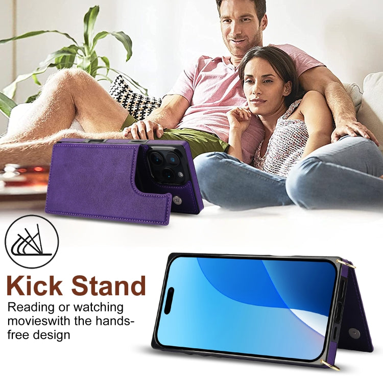 Funda para Teléfono Tipo Billetera con Tapa y Hebillas para iPhone 16 Pro (Morado)